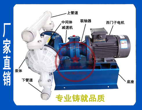 上???yáng)泵業(yè)KYD型電動(dòng)隔膜泵是上???yáng)泵業(yè)開發(fā)的新一代隔膜泵,整機(jī)由電機(jī)、擺針式減速機(jī)、聯(lián)軸器和泵頭組成。與市場(chǎng)上的電動(dòng)DBY型隔膜泵的主要區(qū)別在于:楷陽(yáng)KY牌隔膜泵,大廠制造,規(guī)格標(biāo)準(zhǔn),質(zhì)量可靠;加配聯(lián)軸器,保證了泵與電機(jī)的平衡和散熱;標(biāo)配大品牌電機(jī),保證了隔膜泵的動(dòng)力穩(wěn)定。