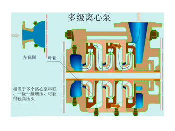 相當(dāng)于多個(gè)離心泵串聯(lián),一級(jí)一級(jí)增壓,可獲得較高壓頭。